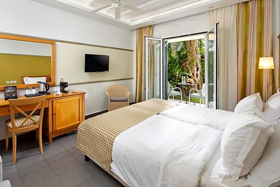 This air-conditioned double room includes a flat-screen TV with satellite channels, a private bathroom as well as a terrace with garden views.